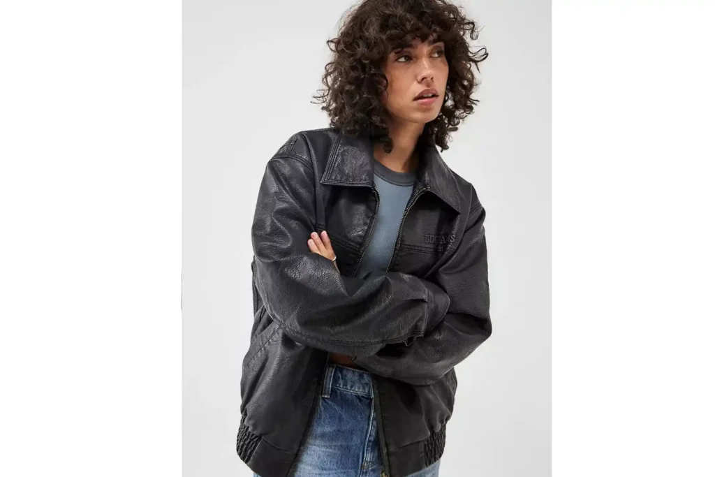 The Bdg Billy PU Leather Bomber Jacket is made for women who love a bold, edgy style. It is also crafted from cruelty-free PU leather. This jacket gives the sleek look of real leather without compromising comfort. Also, its tailored fit makes it versatile for both daytime and evening looks and giving your wardrobe an instant upgrade.