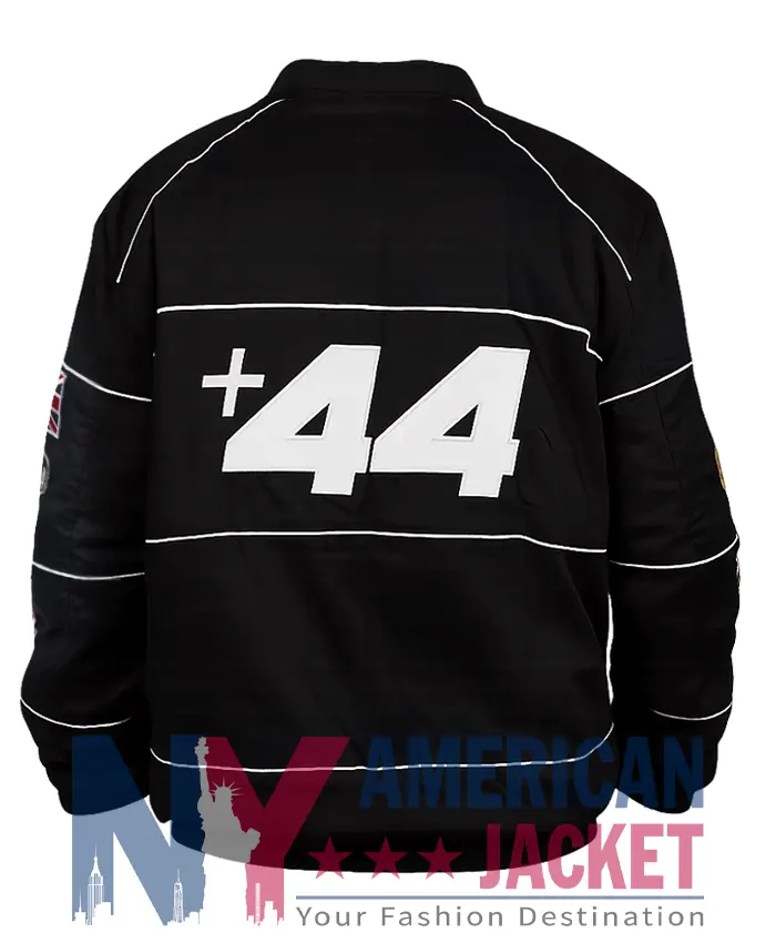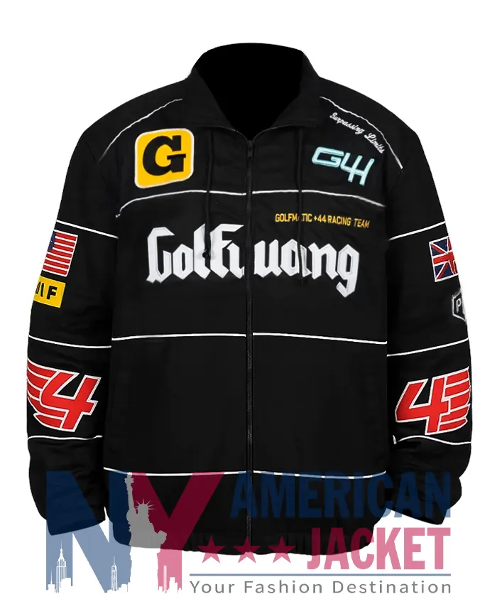 The stand-up collar provides a sharp finish that blends seamlessly into casual and semi-casual outfits. Also, pair it with denim for a relaxed weekend look. Or throw it over monochrome layers for bold street appeal. Well, fans love the chance to Shop Now +44 x Golf Wang Lewis Hamilton Black Cotton Bomber Jacket For Men And Women. Because it’s not only fashionable but also versatile and making it a worthy addition to any modern wardrobe. Lastly, this jacket makes effortless style a daily reality.