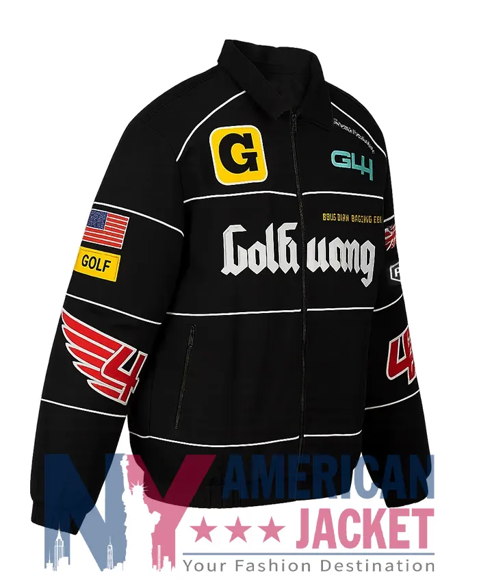 Finding a piece that speaks for you without using words can be the most difficult aspect of dressing good at times. The correct jacket can often feel like the final piece missing from an otherwise simple ensemble. Also, the +44 x Golf Wang Black Cotton Bomber Jacket fills that need. This design, which is currently available at NY American Jacket that adds the necessary flair to your wardrobe. Balancing streetwear attitude with a polished everyday vibe. Well, it is also crafted with high-quality cotton fabric. This bomber jacket is built for both comfort and resilience.Â