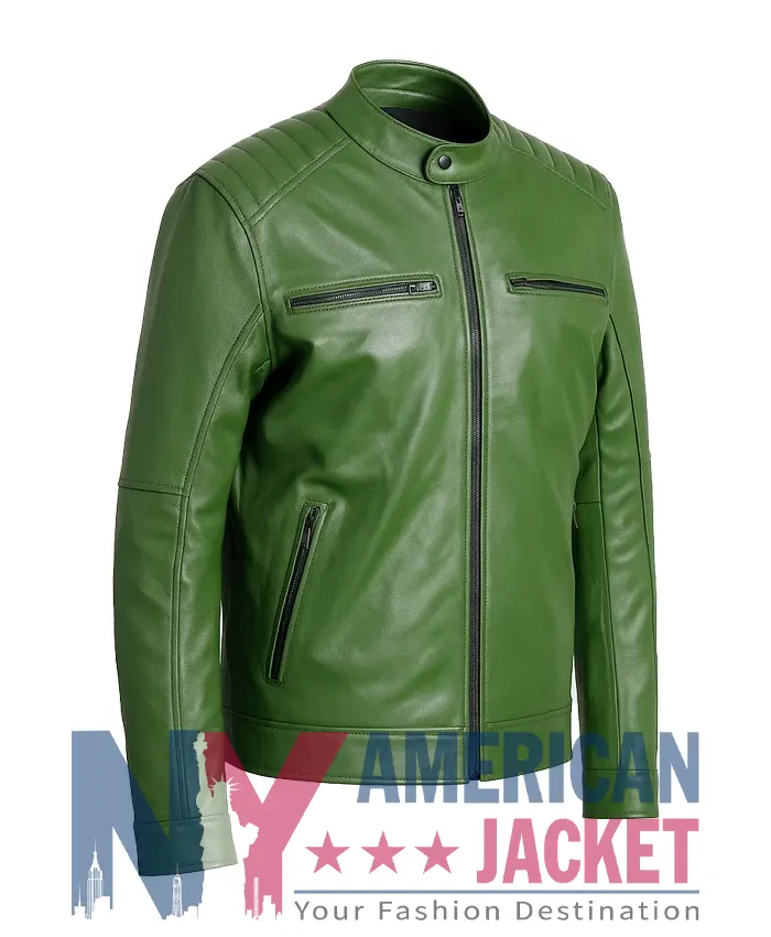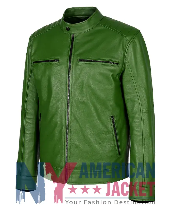Moreover, this Bad Influence 2025 Alberto Olmo Green Leather Jacket is designed to channel that magnetic force into your everyday life. The deep green tone radiates individuality and breaks away from the usual color palette with refreshing boldness. Well, genuine leather construction delivers richness and strength. While the smooth viscose lining offers effortless ease for extended wear. Indeed, the full-length sleeves with YKK zipper cuffs create a refined silhouette. And the snap-tab erect collar adds a structured touch that speaks of determination and bold choices.