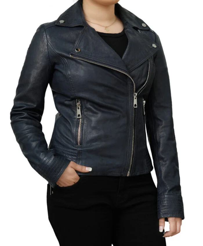 Women’s Black Vinatge Asymmetrical Biker Leather Jacket