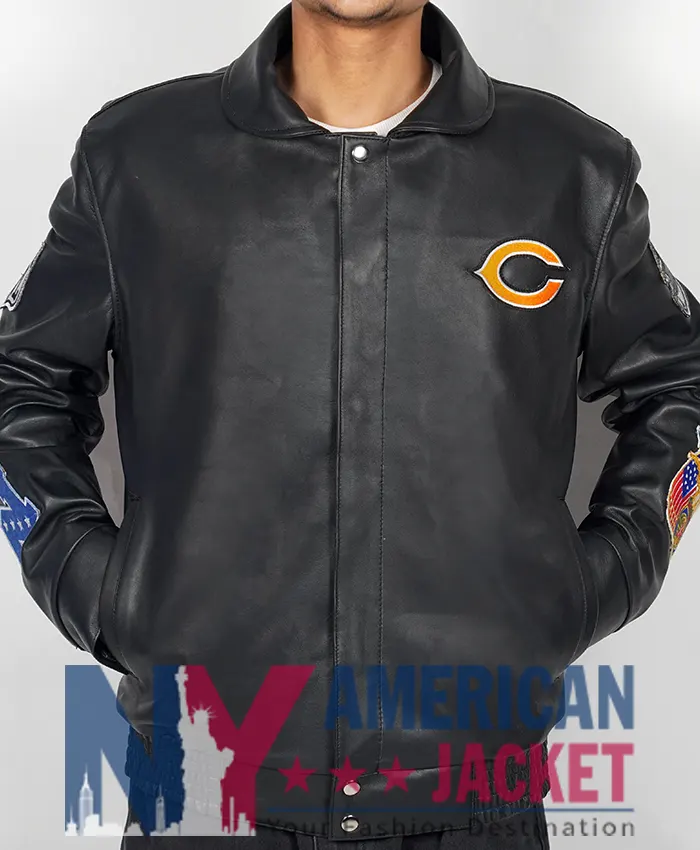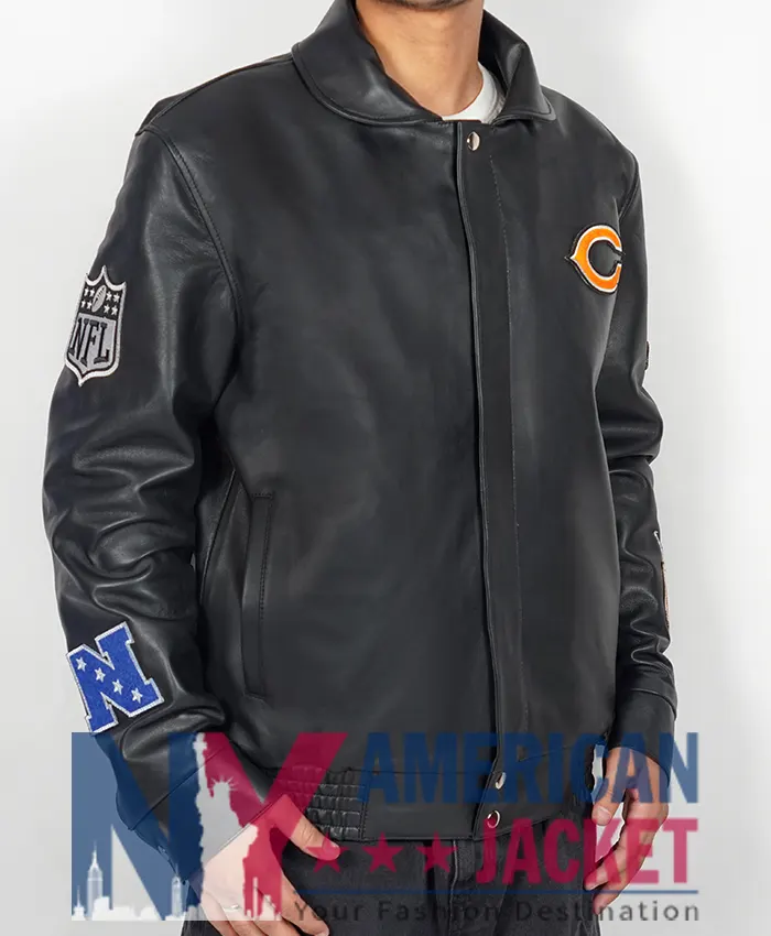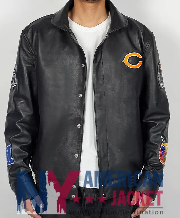 Shop Now American Football Team Chicago Bears Black Leather Jacket For Sale