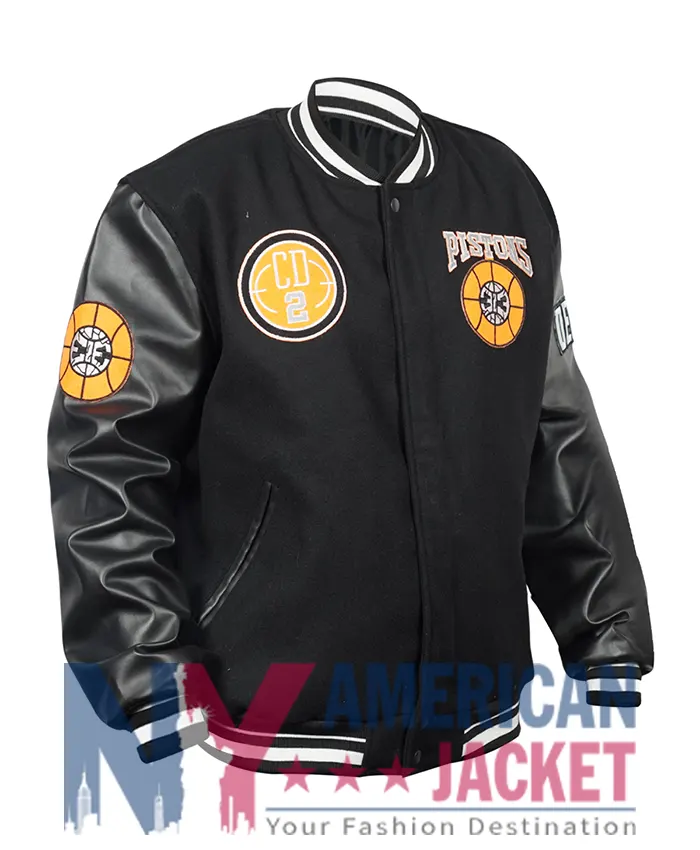 Shop Now NBA Basketball Team Detroit Pistons City Edition Black Wool Varsity Jacket For Sale