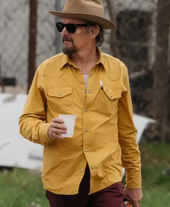 Shop Now TV-Series The Lowdown 2025 Lee Raybon Ethan Hawke Yellow Cotton Shirt For Sale