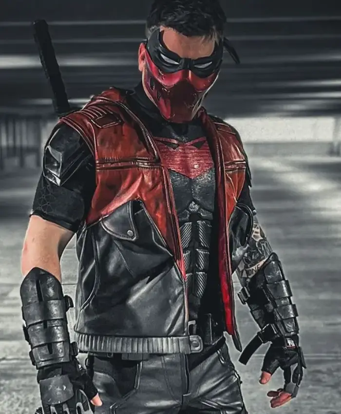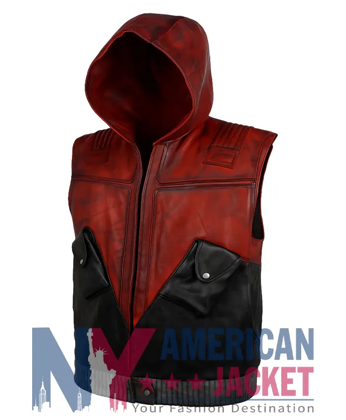 Order Now Men And Women Jason Todd Red And Black Hooded Leather Vest For Sale