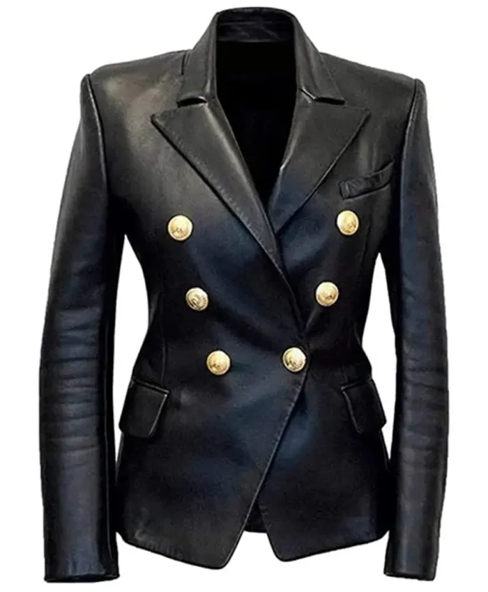 Order Unisex Kim Kardashian Double-Breasted Button Leather Blazer For Sale