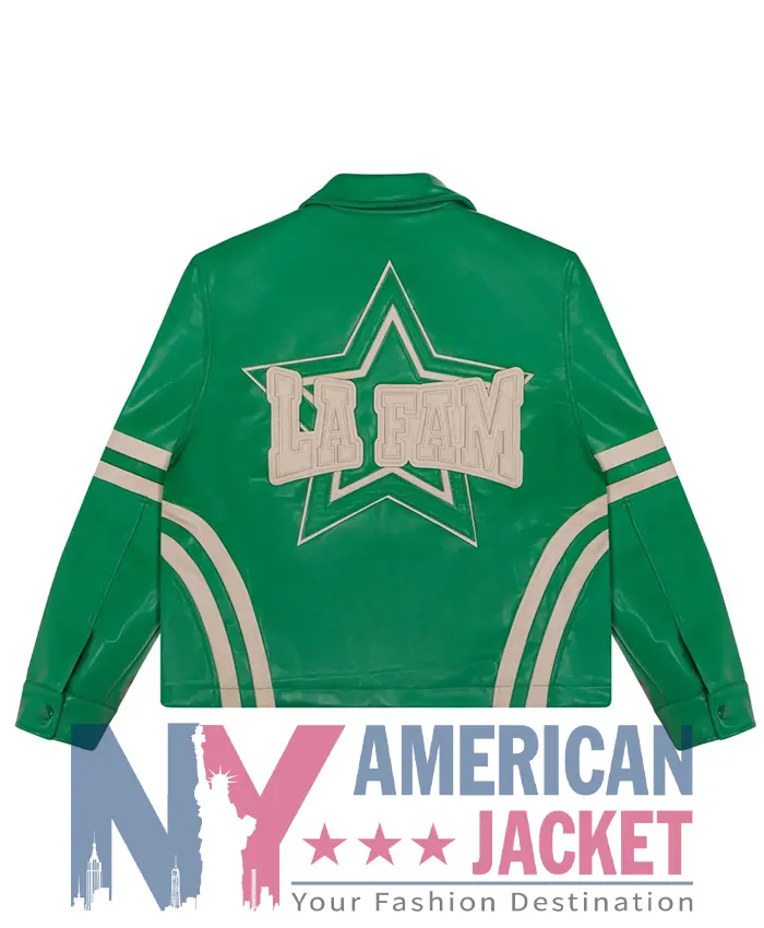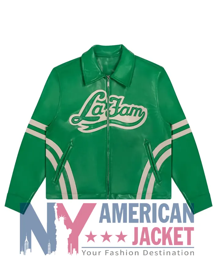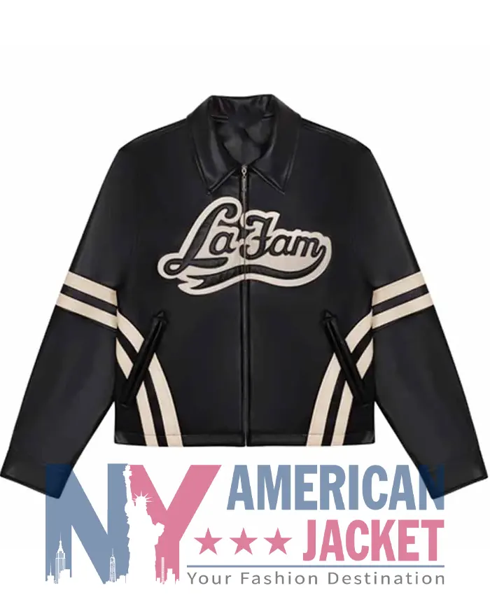Order Now Men And Women La Fam Retro Zip-Up Varsity Leather Jacket For Sale