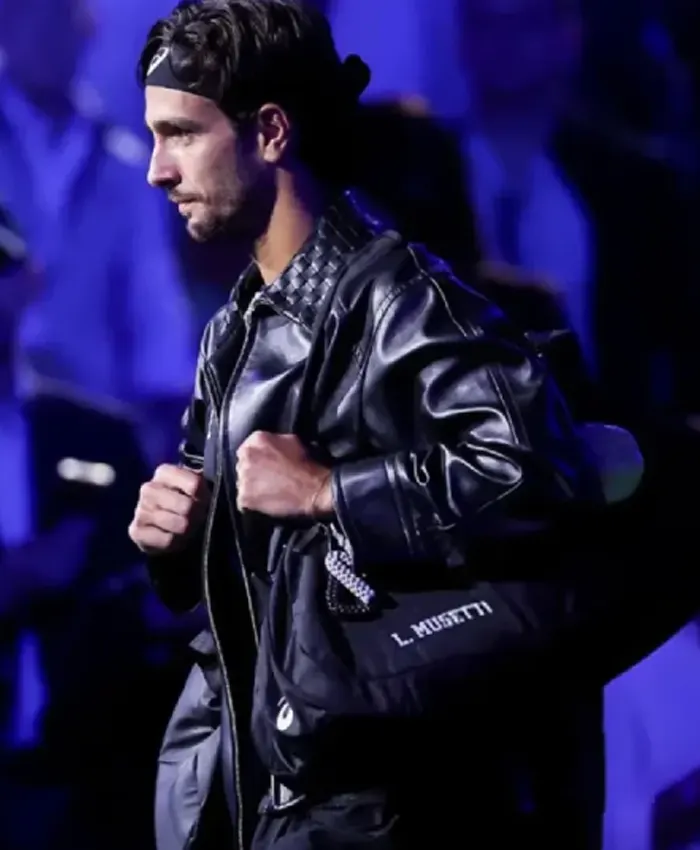 Lorenzo Musetti 2025 US Open Black Leather Jacket