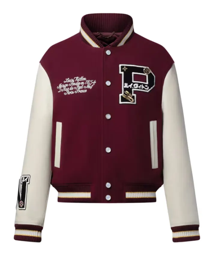 Shop Now Louis Vuitton Epi Leather Burgundy And White Varsity Jacket For Sale