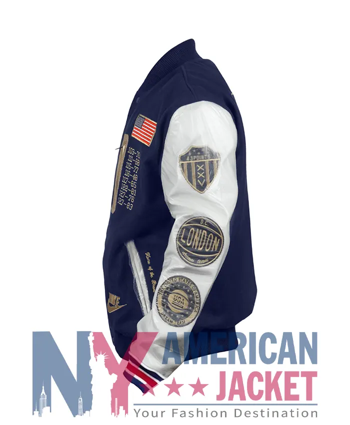 Order Now USA Dream Team Destroyer Blue And White Varsity Jacket For Sale