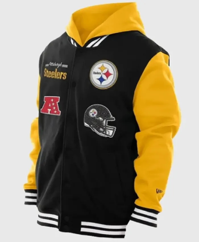 Buy American Football Team New Era Pittsburgh Steelers Hoodie Black And Yellow Varsity Jacket For Sale