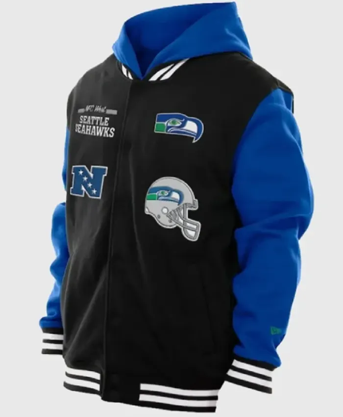 Buy American Football Team New Era Seattle Seahawks Hoodie Black And Blue Varsity Jacket For Sale