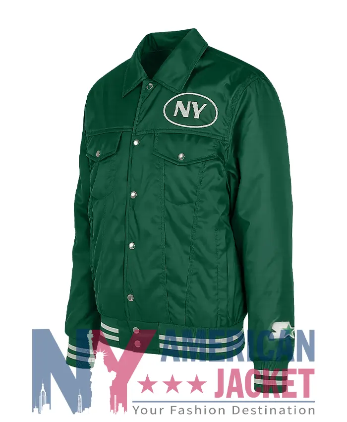 Don’t miss the chance to own this fan-favorite piece. Buy Now American Football Team New York Jets Silver-Tab Green Satin Trucker Varsity Jacket For Men And Women today and let your outfit showcase your Jets pride in style!
