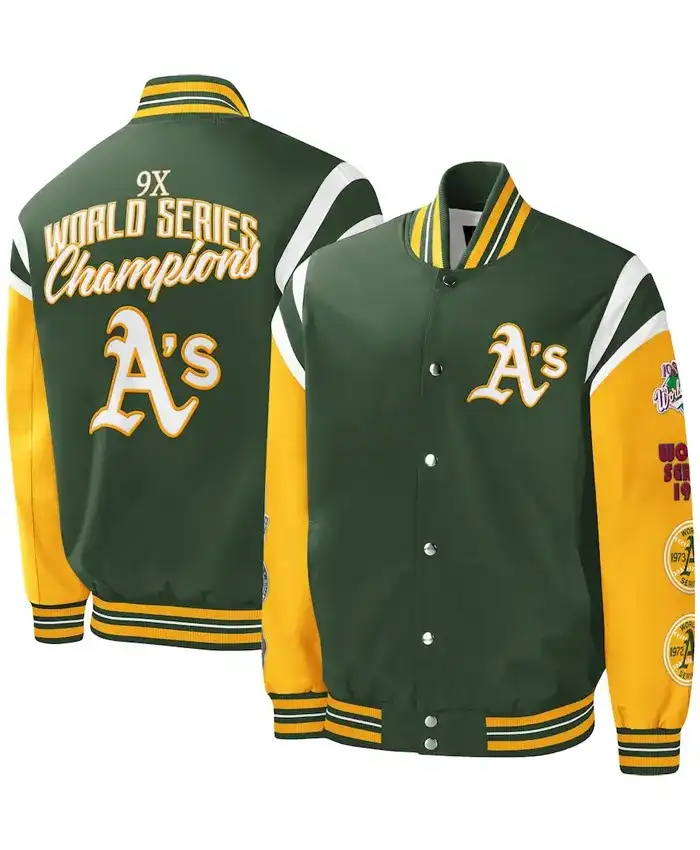 Oakland Athletics 9x World Series Green Satin Varsity Jacket