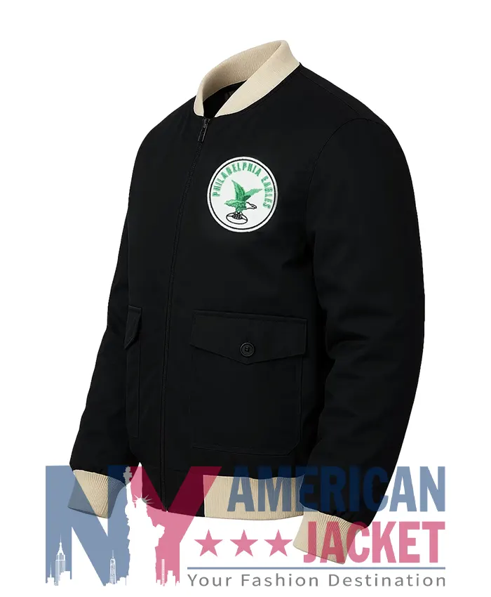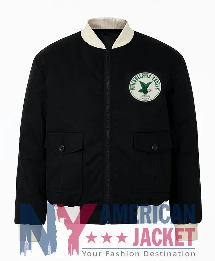 One common dilemma fans face is finding the perfect balance between showing loyalty to their favorite team. And keeping their daily style sharp and versatile. Well, many sports jackets look too flashy for casual wear, making it hard to carry your team spirit everywhere. That’s where the Philadelphia Eagles Cotton Black Bomber Jacket comes in as the ultimate solution. Well, it is also designed with a sleek black base and inspired by the legendary football team. This jacket from NY American Jacket lets you proudly represent the Eagles while still looking effortlessly stylish in any setting.