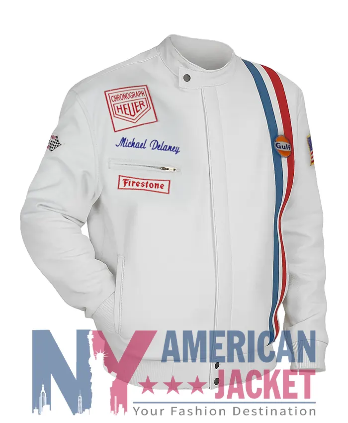 Order Now Men And Women Steve McQueen Grand Prix White Leather Jacket For Sale