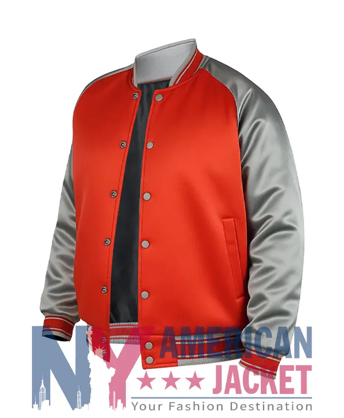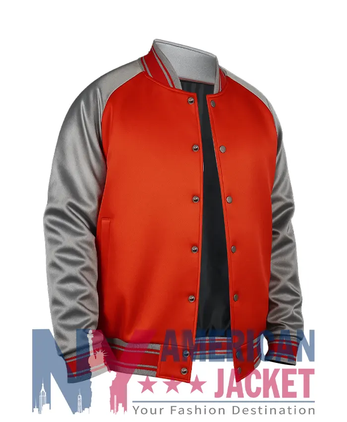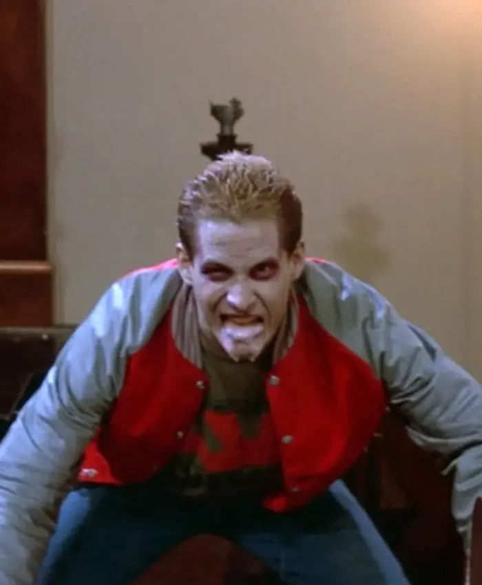 Movie The Return of The Living Dead Freddy Thom Mathews Red And Grey Satin Varsity Jacket For Sale