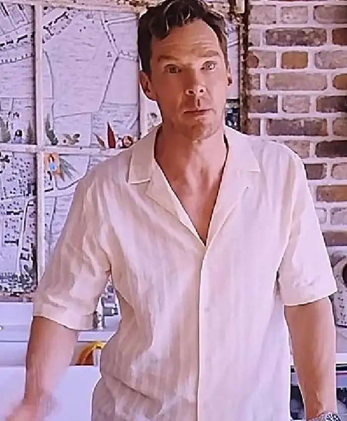 Shop Now Movie The Roses 2025 Benedict Cumberbatch Theo White Cotton Striped Shirt On Sale