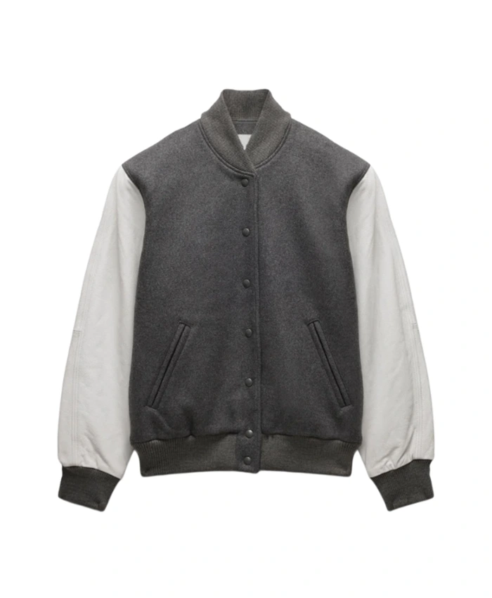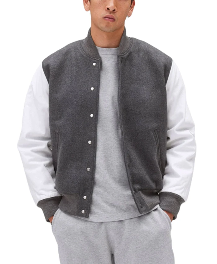 6 reviews for Unisex Light Grey Varsity Bomber Jacket