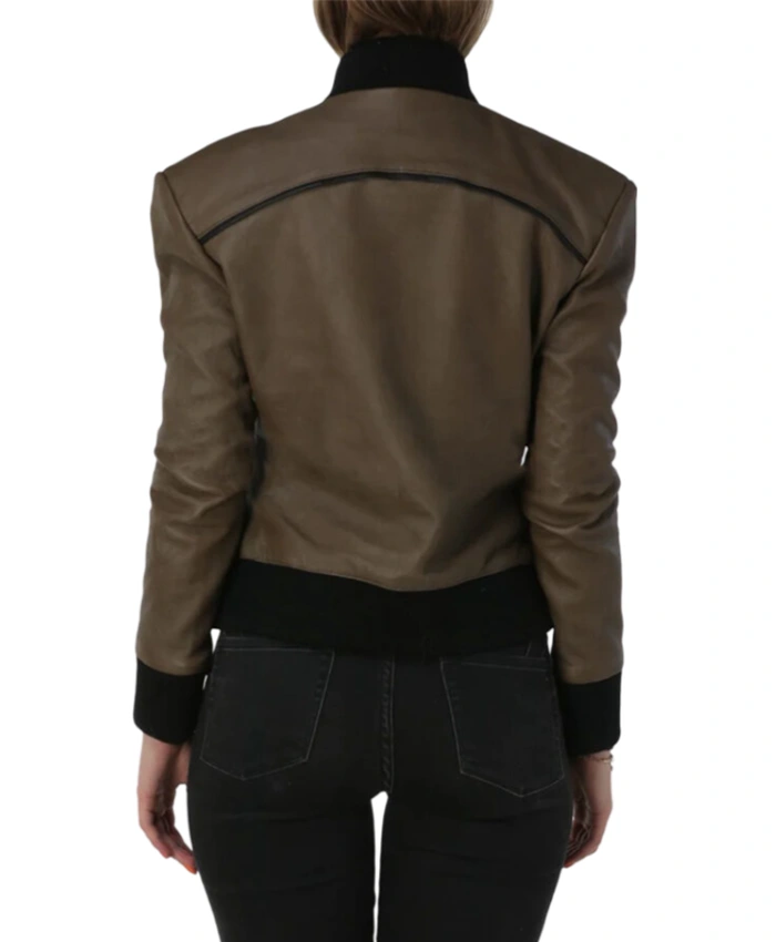 7 reviews for Brown Women’s Leather Bomber Jacket With Rib Collar