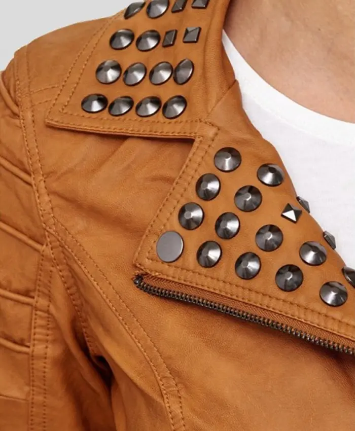 The Women’s Brown Studded Biker Leather Jacket of the punk fashion era has become essential in the world of fashion! Because of its unique and rebellious look, it is stealing the spotlight in every female wardrobe. It features modern apparel because of its frightening and loud appearance. That screams ‘attention and badass” aura. We are also inspired by the studded leather jacket that is right now ruling over the fashion industry. So, we turn the page of fashion history backward to find the inspiration for our new design.