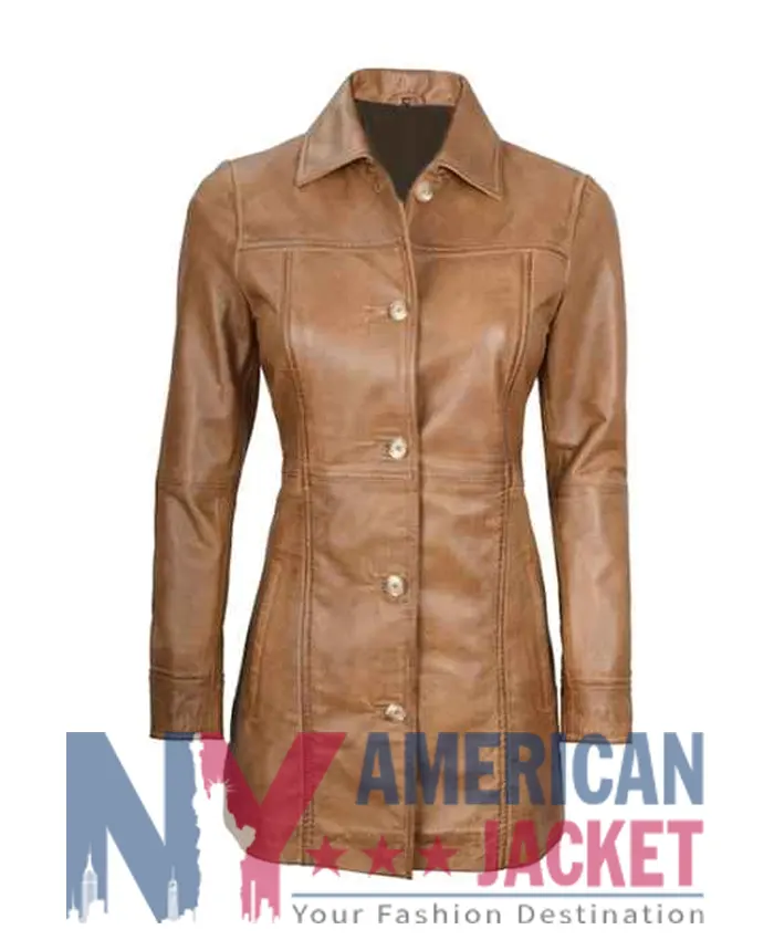 So, check out the Women’s Camel Brown Real Leather Coat.